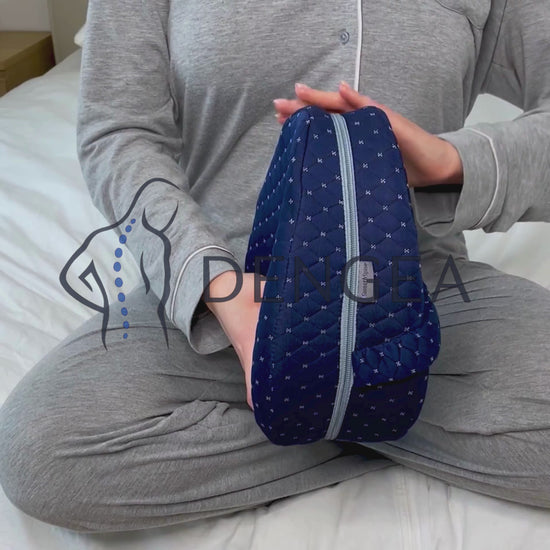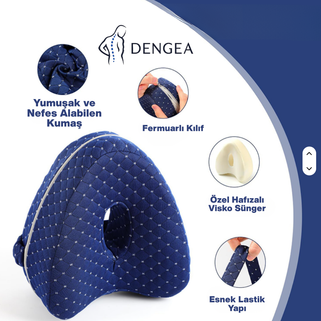 Dengea Hizalama Yastığı, yan yatış pozisyonunda bacaklarınızın arasına yerleştirildiğinde:
